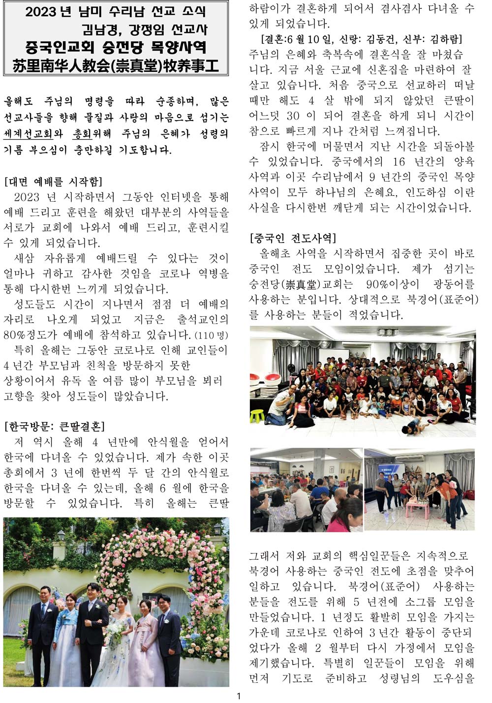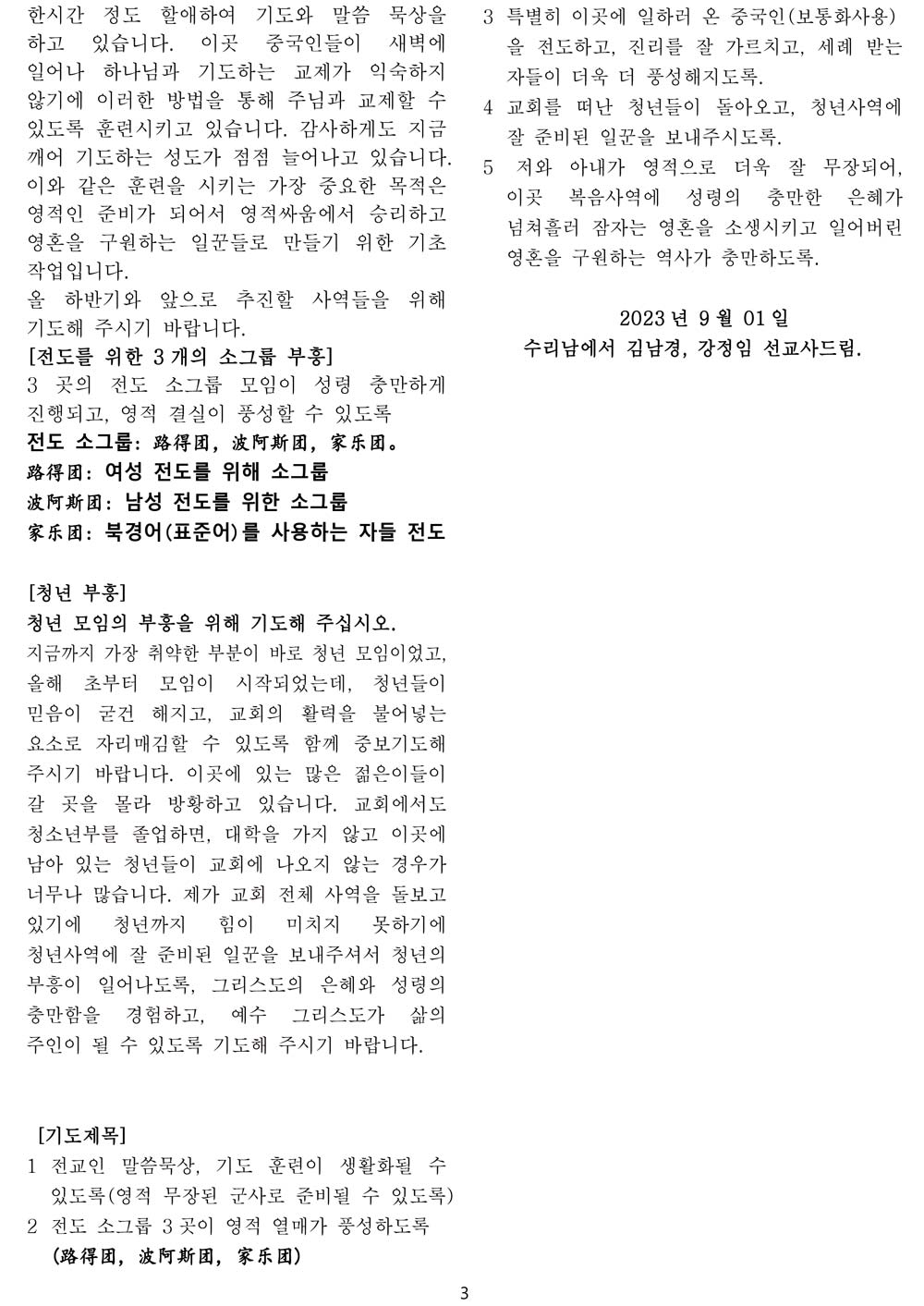 수리남 2023년 9월 1일 선교소식