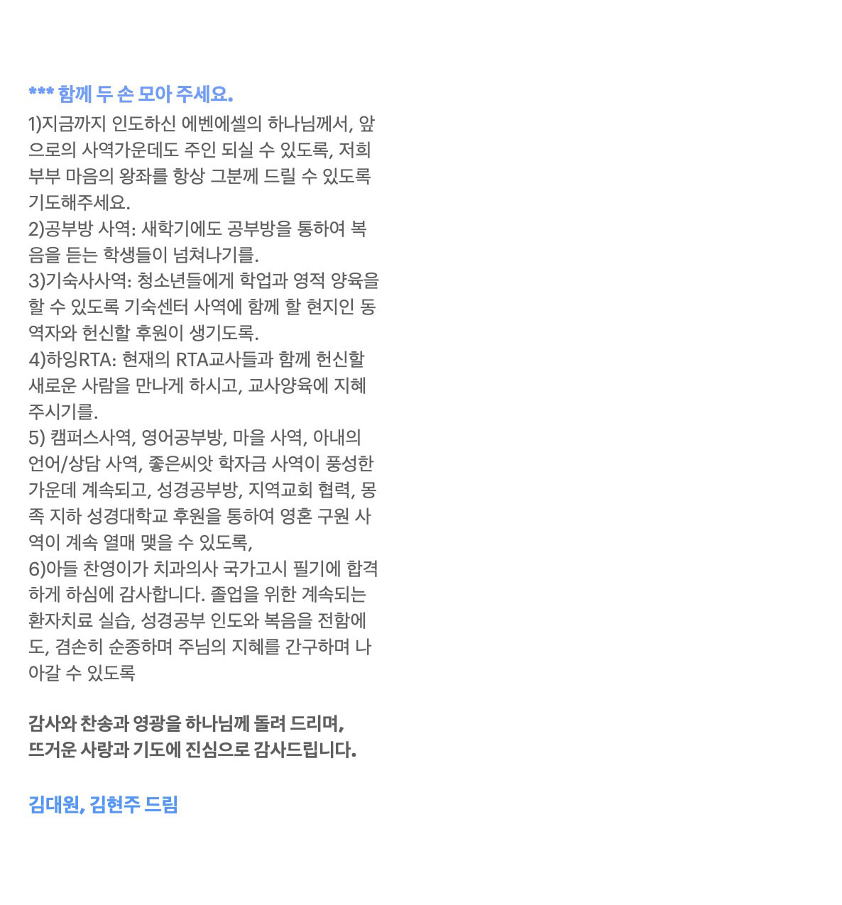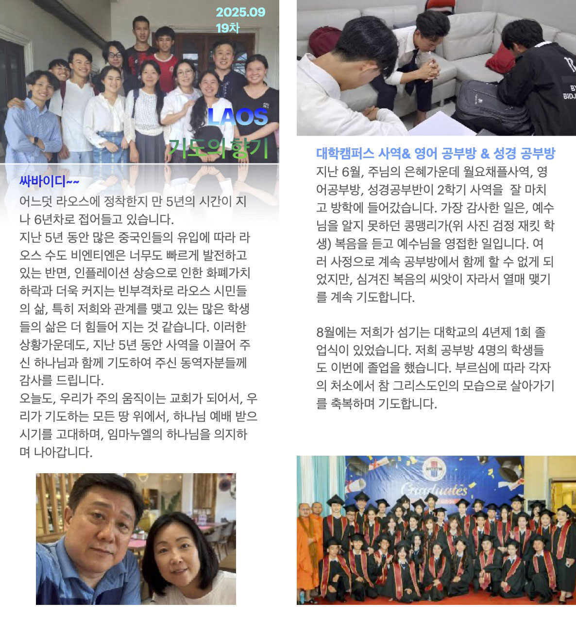 라오스 김대원 선교사님이 보내온 선교편지